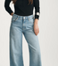 Our newest wide-leg jeans have a comfortable mid-rise waist and fit slim through the hip. Loose-fitting through the leg, they gradually widen to the hem. This fit plays well with any footwear.